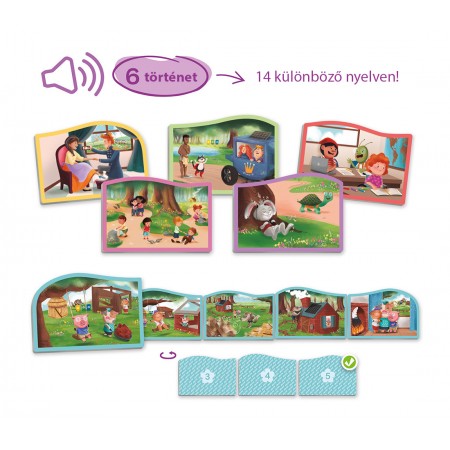 Minden történetsornak különböző színű a kerete a könnyebb azonosíthatóságért. A készlettel fejleszthető a kommunikáció, a nyelvi képességek, valamint a kronológia észlelése.