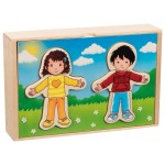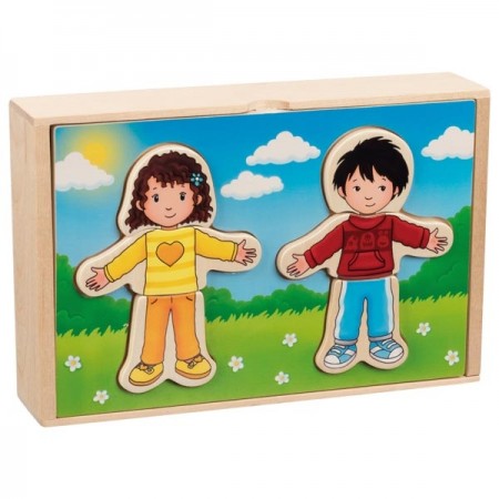 Öltöztető puzzle, kisfiú-kislány, dobozban