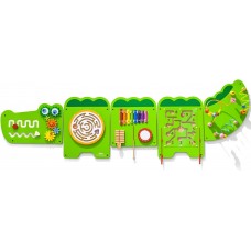 Kedves, paci formájú fali játék. A kétféle tevékenység (fogaskerekes játék és golyóvezető) fejleszti a szem-kéz koordinációt a finommotorikát és a logikai készséget.