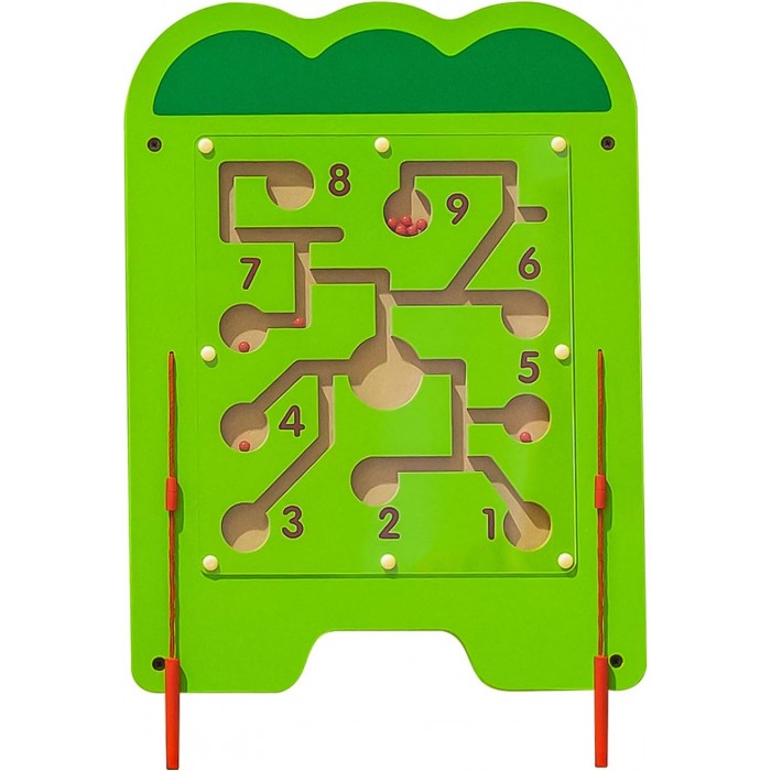 A krokodilon útvesztő, fogaskerekek, labirintus, golyóvezető, hangszerek és számos útvesztő is megtalálható.