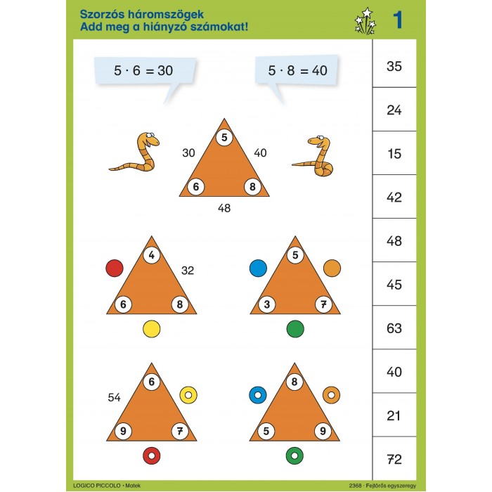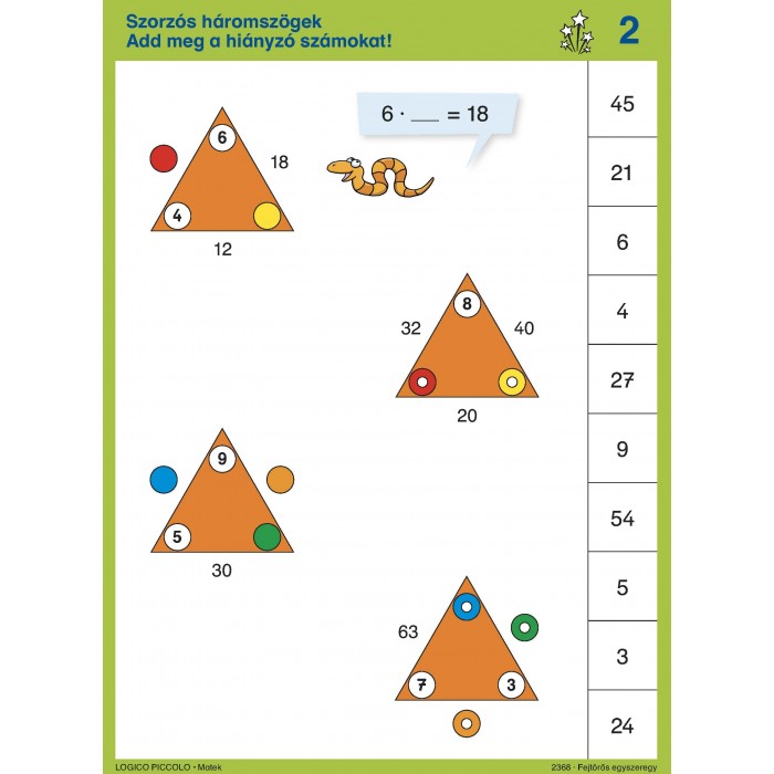 A fejben való szorzás alapja a szorzótábla ismerete. A magolás rendkívül unalmas, nem sok köze van a gondolkodáshoz, a matematikához. De az biztos, hogy eredményes, mert évtizedek múlva is gond nélkül rávágjuk, mennyi 7x7 vagy 7x8. Vajon lehet-e a szorzást ugyanígy életre szólóan, de szórakoztatóan, játékosan tanítani? Igen! Remek eszköz ehhez a LOGICO PICCOLO sorozata.