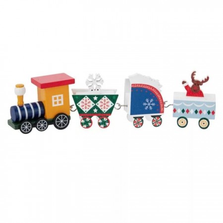 1 mozdonyból és 3 kocsiból álló kisvonat, vidám karácsonyi motívummal díszítve.