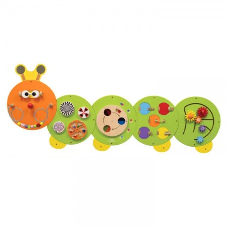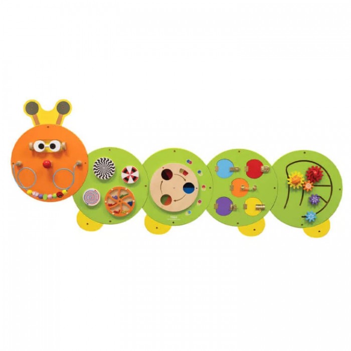 Összetett készségfejlesztő játék, matatófal (falra szerelhető, hernyó). Fejlesztőjáték, mely egyéni és csoportos foglalkozásra egyaránt alkalmas.