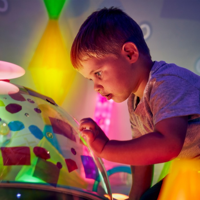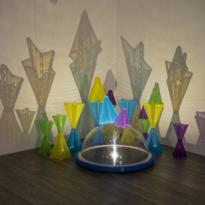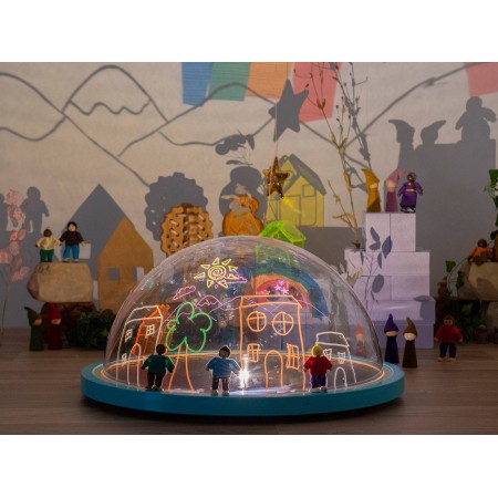 Egy egyszerű kapcsoló megnyomásával ez a biztonságos, robusztus fénykupola varázslatos, hangulatos, magával ragadó fényeffektusokat és tájakat hozhat létre. A falak és a mennyezetek gondolatok és ötletek vászonává válnak, inspirálva a gyermekek által vezetett felfedező és érzékszervi játékot. Különböző anyagokat, figurákat, struktúrákat adhatunk hozzá, vagy akár rá is írhatunk a kupolára (letörölhető filctollal).