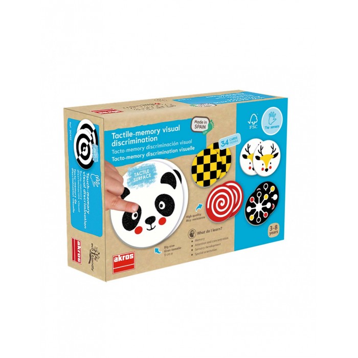 Gyengénlátók számára is jól használható, erősen kontrasztos ábrákkal és tapintható textúrákkal ellátott memóriajáték.