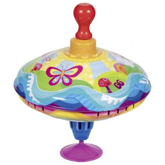 Fémtestű búgócsiga vidám napsugár motívummal.