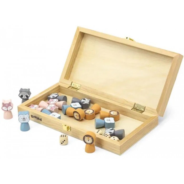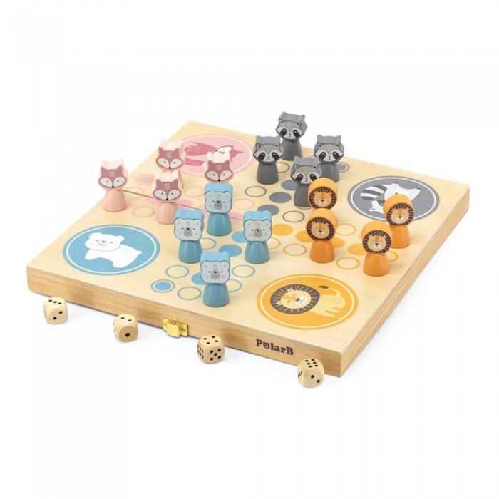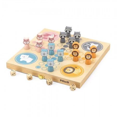 A Ki nevet a végén! társasjáték világszerte jól ismert a gyermekek és felnőttek körében. A Viga PolarB egy teljesen új verziót készített, amely elvarázsolja a kicsiket. A készlet négy kockát, egy tárolódobozként is funkcionáló játéktáblát táblás dobozt és tizenhat gyönyörűen kivitelezett pasztellszínű figurát (róka, medve, oroszlán, mosómedve) tartalmaz.